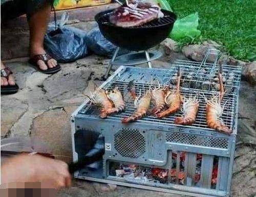 这机箱子还能当烧烤架用,看着烤大虾不错呀