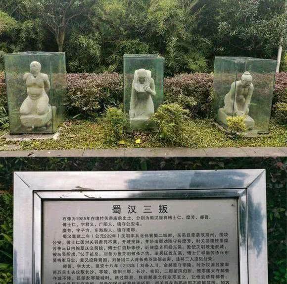 荆州易主时的投降派,尽管他们也有太多的心酸与无奈,但蜀汉方面显然对他们耿耿于怀。在四川绵竹诸葛瞻庙前,至今跪着三座石像,他们是荆州易主时的三位叛徒傅士仁、麋芳、郝普,被称为“蜀汉三叛”。不过,让人纳闷的是,郝普被列为了叛徒,潘濬却未被列入。从史料记载来看,郝普两次被俘,最后才归附东吴,对蜀汉并无敌意。而潘濬归附东吴后,不遗余力打击蜀汉忠义之士,对蜀汉的伤害显然更深。绵竹诸葛瞻庙前的“蜀汉三叛”石像不知始于何时,但就人选而言,并不是很公平。