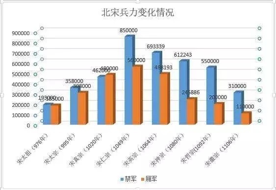 网络上流传的北宋兵力变化(数据略有误差)