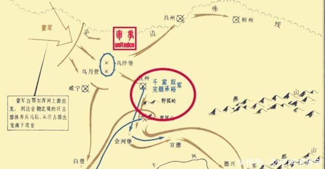 第二个例子便是野狐岭之战。当时金国的守将完颜承裕老道稳重,固守长城一线,把兵力分开来不让蒙古骑兵有越关而过然后夹击的机会,以往蒙古骑兵依靠这样的战术攻无不克。