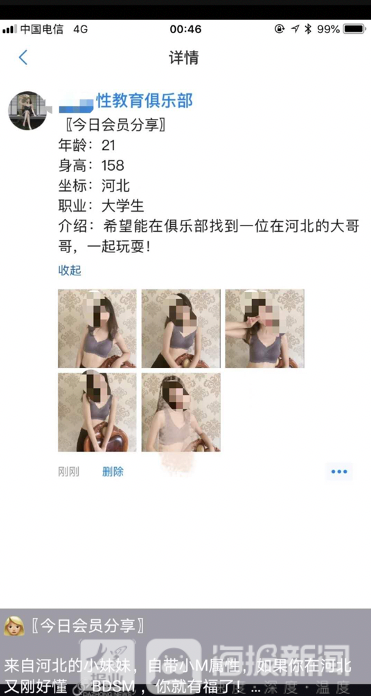 记者注意,小红书博主在其微信朋友圈发布了大量身体裸露的女性视频和照片。每张照片均配有女性的详细信息,其中包括年龄、身高、职业和地理位置等。
