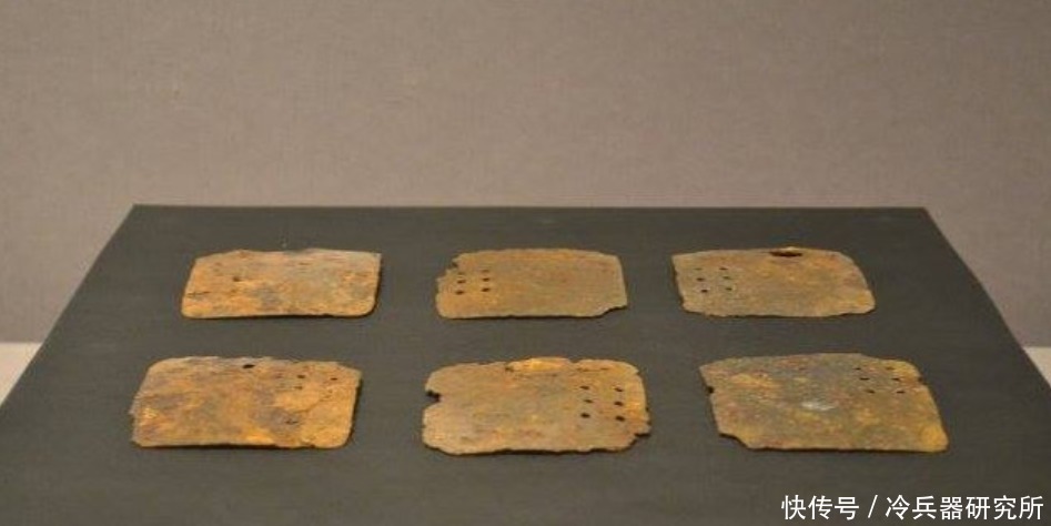 第一类是方形甲片的鱼鳞甲,这种鱼鳞甲的甲片为正方形或者矩形,甲片的一角上有若干个孔,从孔的分布来看,这种甲片显然不能像一般的札甲那样直接缀连成甲。国外如俄罗斯也出土过类似的甲片,按照俄罗斯人的研究,这种甲片需要缀在织物或者皮革制成的衬底上,以上排压下排的方式组合成甲。这种方形的鱼鳞甲在明初时颇为常见,一些明军将领如吴忠,康茂才的墓葬中便出土过这种甲。