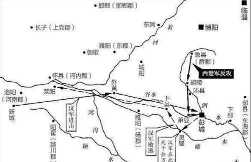 项羽被牵制在齐国,另一方面刘邦也从汉中出兵攻取三秦之地,然后继续东进。刘邦的扩张非常顺利,各个诸侯王倒向汉军,刘邦非常顺利进入西楚的都城彭城。此时以刘邦为首的诸侯联军拥兵五十九万之多,彭城也被攻克,刘邦似乎是胜利在望。
