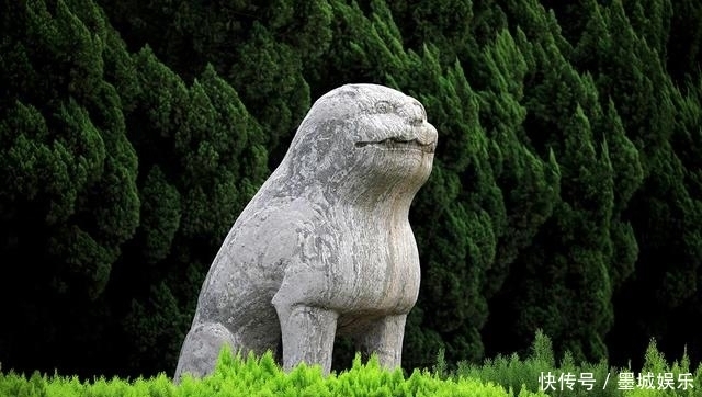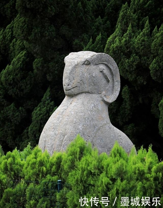第七、第八分别是一头虎,第九、第十分别是一只羊。老虎与羊处在食物链的顶端与末端,放在一起似乎很不协调,但皇家陵园不可能是随意摆放的,它有着很深的含义。老虎威武雄壮,昂首端坐,象征着威严的皇权,而嘴角流露的笑容,似乎又是对自己统治能力的自信。羊温顺老实,象征黎民百姓,双膝跪地,则表示谦恭臣服。神道两侧加在一起,一共是4只虎,4只羊,看来大宋对4这个数字情有独钟。