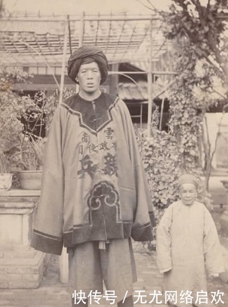 图:晚清巨人詹世钗。詹世钗身高超3米,照片上的他穿着清朝官服,看上去身材高大魁梧。