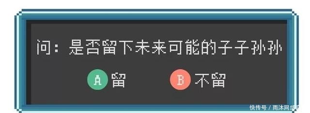 如果选择A:留,那么敬事房太监会准确记录下,时间地点人物事件;如果选择B:不留,那么敬事房太监便会将"子孙"赶出,以达到避孕的效果。