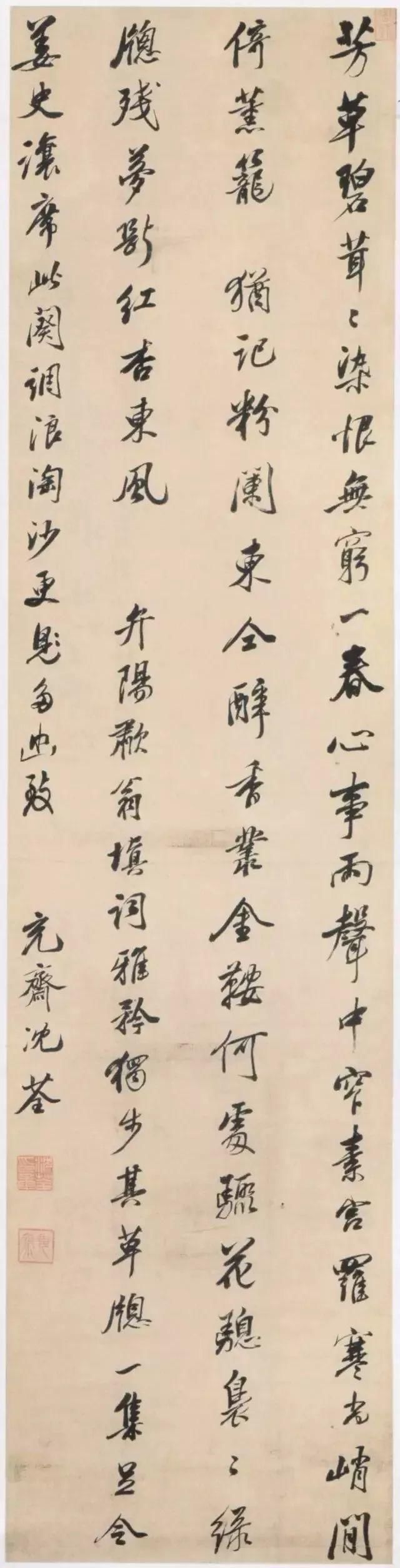 沈荃《行书浪淘沙词轴》绫本行书 178.2×44.3cm 北京故宫博物院藏