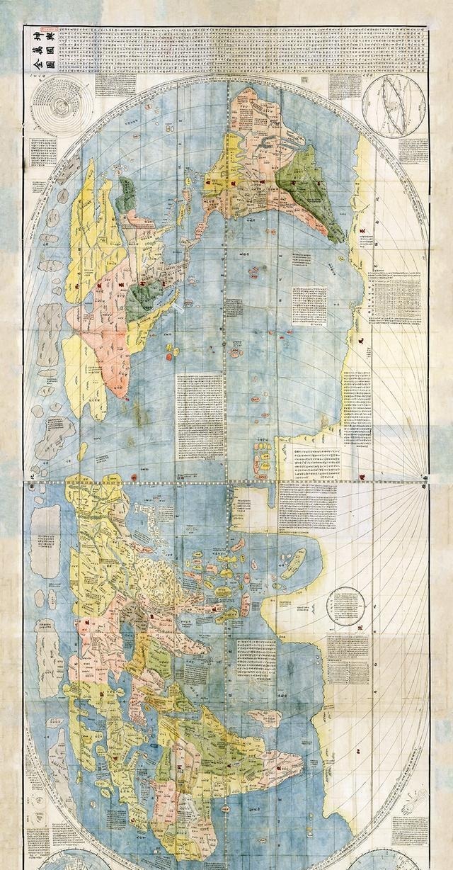 传入日本并经抄绘、上色的《坤舆万国全图》