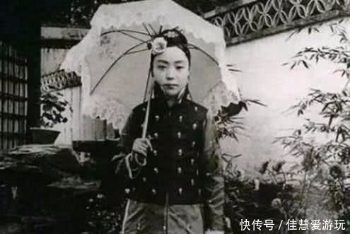 一位贵族家的姑娘打着一把西洋伞站再镜头前。1840年以后,西方文化渗入中国, 许多先进的物品也随之传入中国,正如这把西洋伞,在清朝人眼中就是非常贵重的物品,所以西洋伞也只有贵族才用得起。