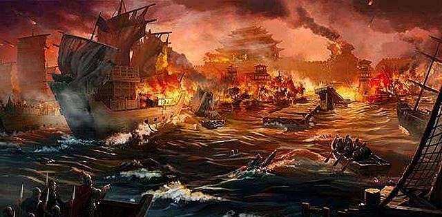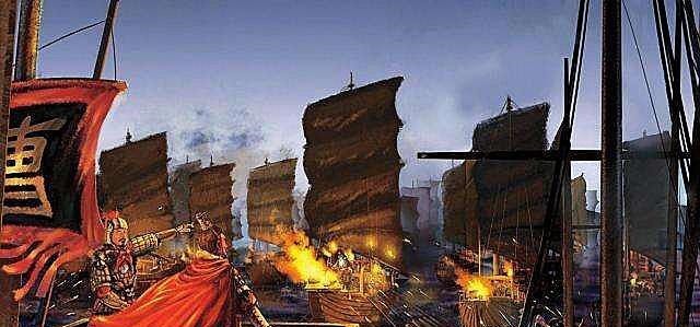 所以,这是一场实力悬殊的斗争。孙吴两家加起来,还没有人家的一半多。如果不能好生利用地形优势,根本无可取胜。当时周瑜让黄盖诈降,然后带着他们早已经准备好的已经铺上黄草,淋上油的战船往曹军方向走去。
