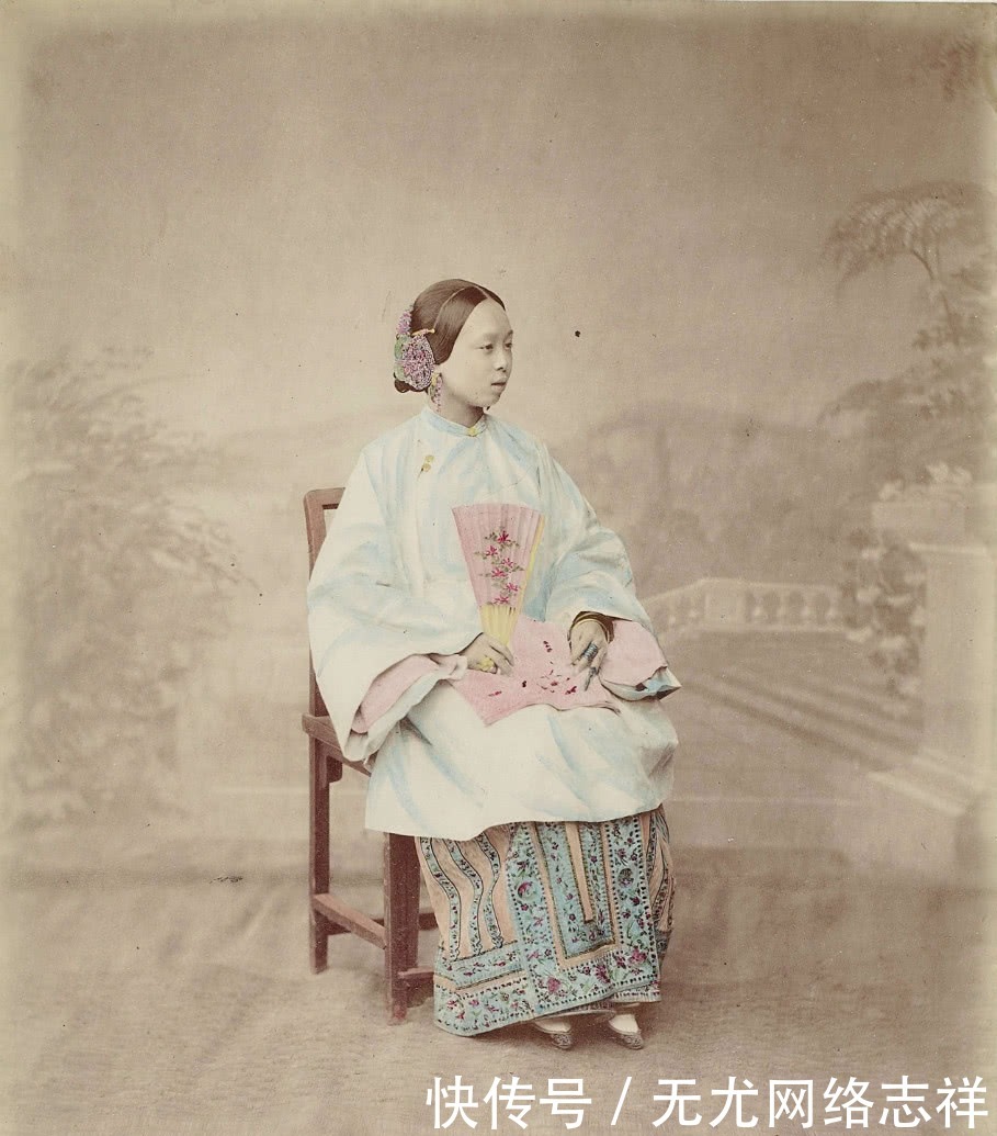 图:一名官员的小妾,她缠足了。清朝虽然规定是一夫一妻制,但事实上也是默认纳妾的,即"一夫一妻多妾"。