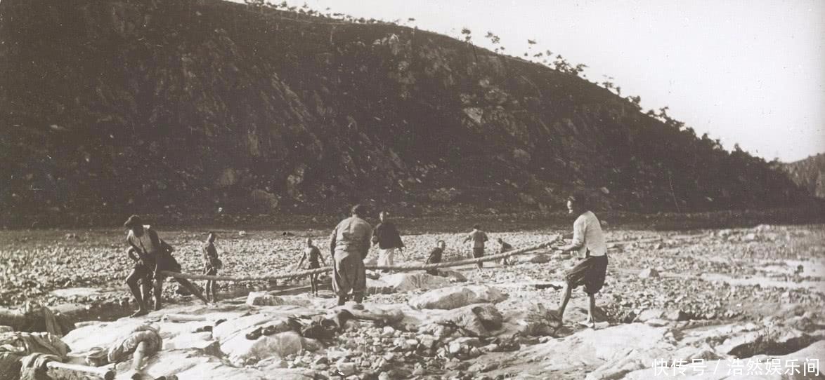 图为采石场工作的清朝工人,靠劳力吃饭,非常值得敬佩。