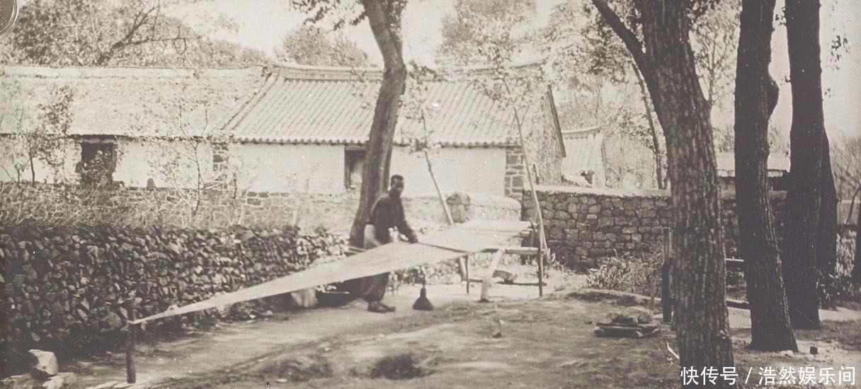 图为晚清时期的手艺人,正在辛勤的工作,不远处还有几间小房子。
