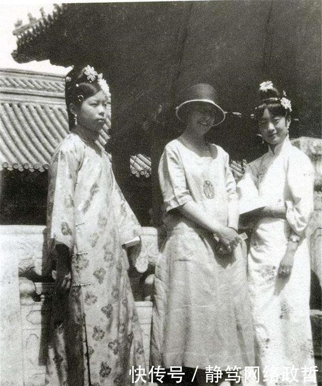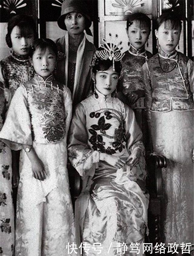 末代皇后婉容与女宾的同框照,婉容娇美的容颜,文雅的谈吐,她是一位富有教养的名媛,比清后宫的妃嫔美多了,也丝毫不逊色于清朝的格格们。