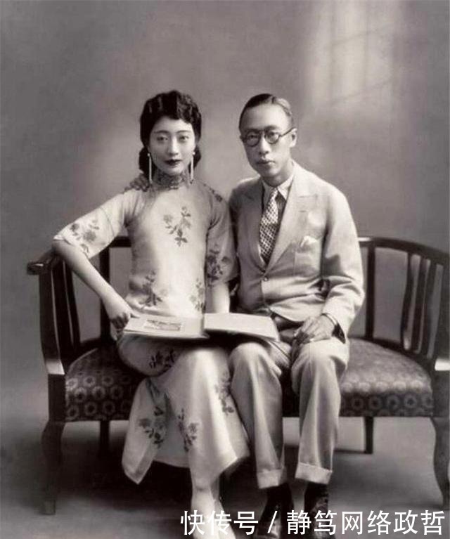 婉容和溥仪亲密的同框照,婉容穿着精致的旗袍,烫着时髦的卷发,搭配着皮鞋,尽显时尚靓丽;溥仪则西装革履,手放在婉容的肩膀上,难得温情的一面。