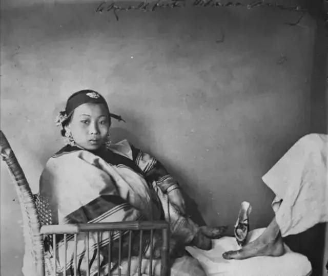 女子展示裹脚布下的小脚,清代的“三寸金莲”对于女子是一种摧残。可是否有人知道,这种“变态之美”让女子趋之若鹜。这陋习并不强迫女人,而是女人自愿,只是为了取悦自己的男人!除了自己的丈夫,一般人看不到。