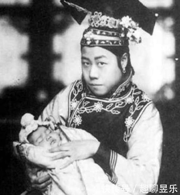 图为晚清时期的贵妇,抱着出生不久的孩子,对着镜头有点好奇,只是颜值不是太高。