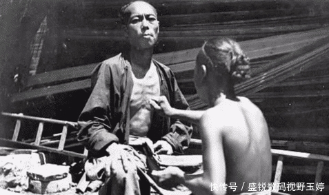 这张照片中的两个人正在进行土法治疗。当时的老百姓生活拮据,几乎没有多余的钱去看病。有病了只能硬撑着,实在不行就用农村的土办法。有的管用,有的没用。所以,那时候的人死亡率也很高。