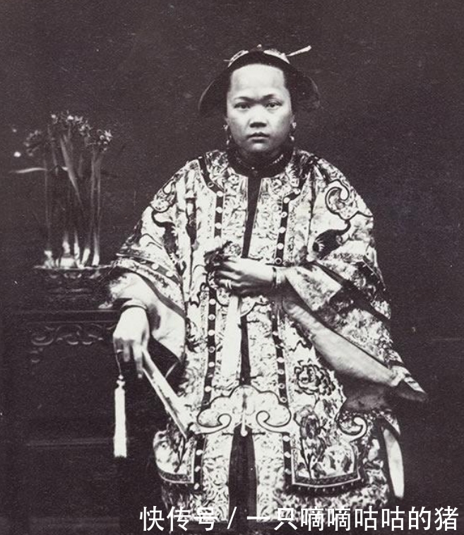 这是晚清官员的妻子,其穿着十分的华丽,眉目端庄霸气,眼神中透露着正室妻子才有的严谨与霸气。