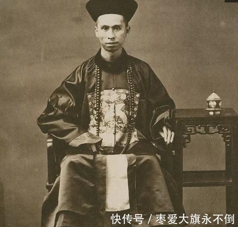 晚清官员和女人的真实老照片:图为晚清的一个官员,穿着官服,身形非常的瘦,看起来好像以前电影里看到的僵尸,非常吓人。