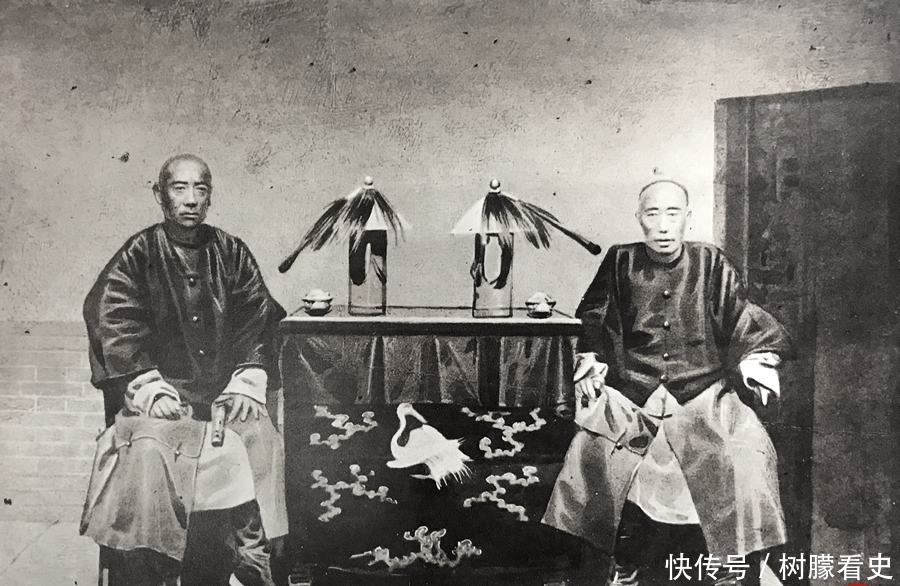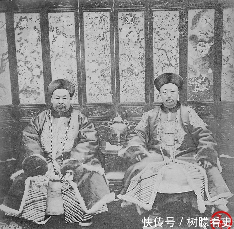 1881年秋季的一天,左宗棠即将前往南京,奕譞在王府设宴为他饯行,并拍下了这张合照。左宗棠向奕譞赠送了腌雹葖苗、韭菹、菽饼等礼品,奕譞则回赠其园中蔬果,显得亲热随便。