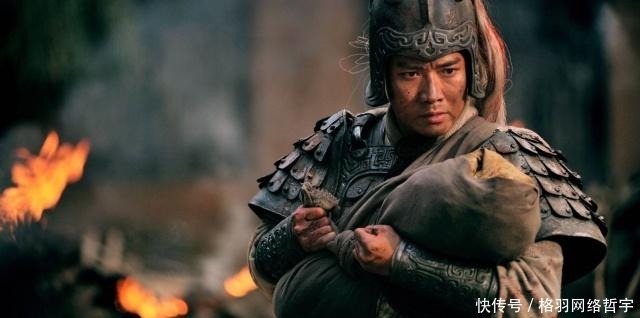 赵云七进七出,才救出刘备家眷。他追上刘备后,将刘禅归还给刘备。刘备接过孩子,便将孩子丢在了地上,狠狠地骂道:"为了这么个破孩子,差点损失了我一员大将!"赵云赶忙把孩子抱起来,跪在刘备面前,感动万分地说:"我赵云为主公肝脑涂地,不求回报!"