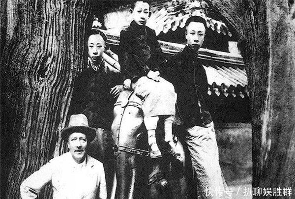 这张是末代皇帝溥仪和溥杰、润祺以及溥仪的英文老师庄士敦的同框照,润麒是末代皇后婉容的胞弟,在婉容进入宫廷后,润祺进宫当了溥仪的玩伴,在润麒的眼里,溥仪好玩随和,没有架子,那或许是他童年最美好的回忆。