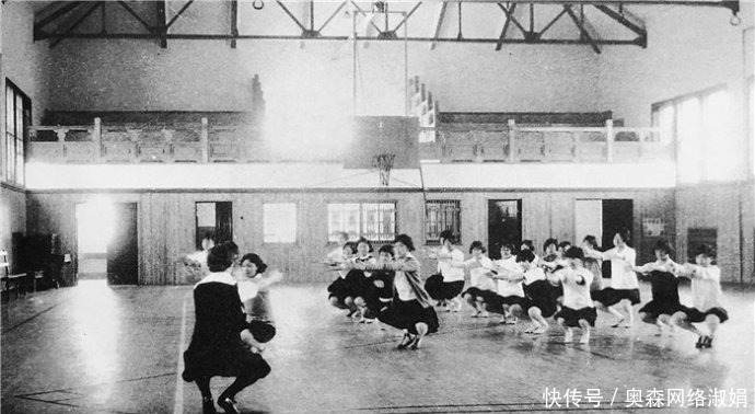 民国某大学的大学女生在进行舞蹈表演。拍摄于1938年。
