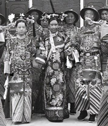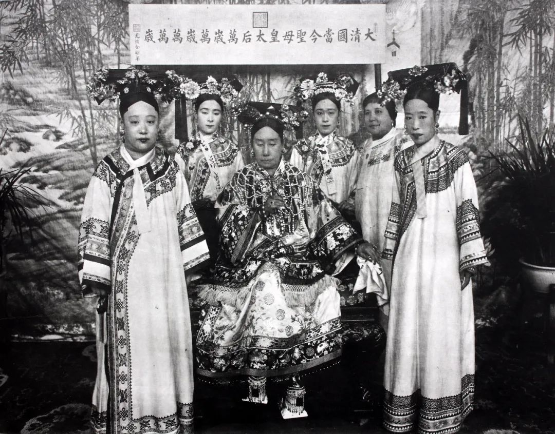 在一张竹林场景照中,慈禧扬起右手的一瞬间眨了下眼睛,刚好被勋龄用相机拍下,于是,一张破天荒的闭眼照诞生了。仔细观察照片,老太后紧闭的眼皮上被画上了毫无神态的瞳孔。