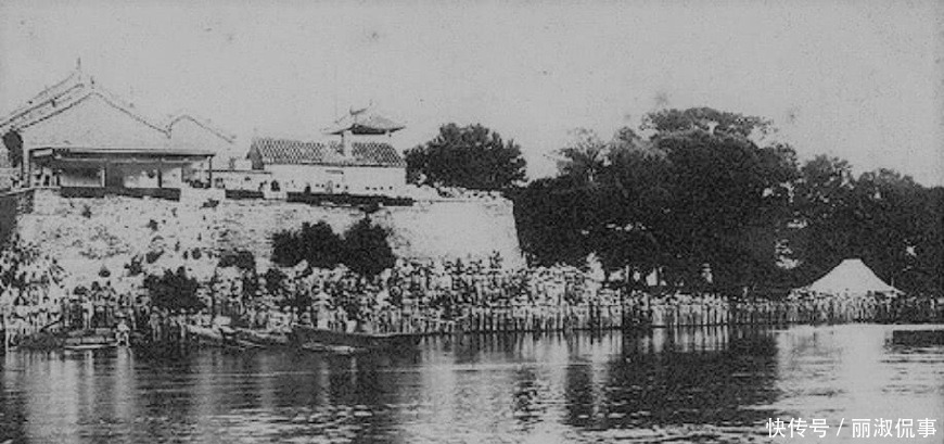 八国联军攻破北京城后,在昆明湖举行游泳比赛。