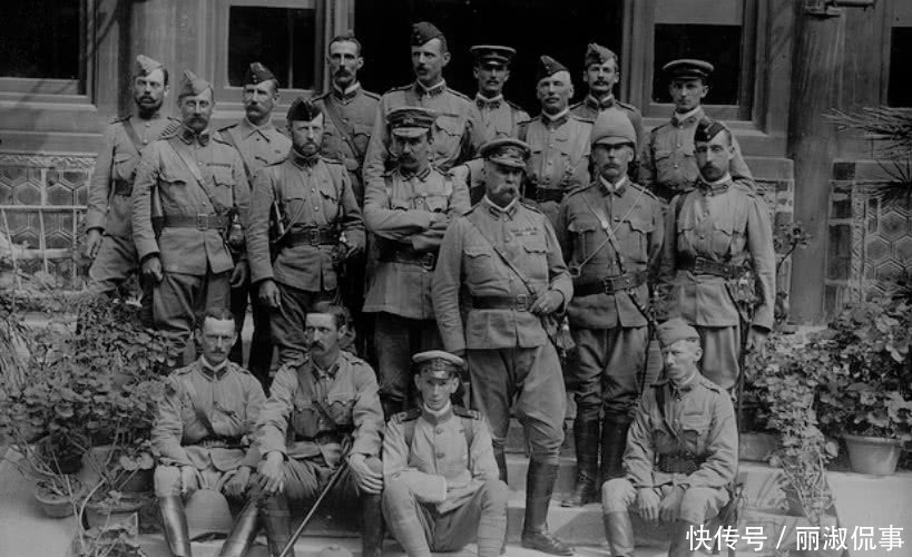 照片拍摄于八国联军侵华期间,攻入北京城的英军部队军官的合影。