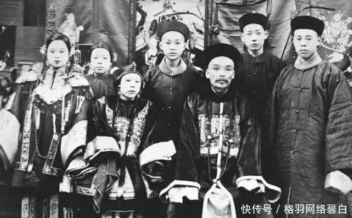 这是一位官员的全家照,左一的小妾站立着,因为她并非正妻,所以是没有资格坐的。照片中的官员眼神平和,他的几个儿子也都长相清秀,看起来像是一位清官。