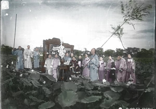 慈禧太后彩色罕见老照片:慈禧喜欢逛荷花园,那是谁都知道的事情,大臣们有事的时候在大殿找不到老佛爷,就直接去荷花园。慈禧在荷花园心情也好,不会随便骂人的!
