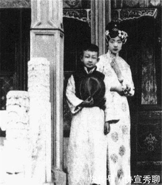 这一张照片很珍贵,是末代皇后婉容与清朝最后一位"国舅"同框,拿着扇子的就是婉容的弟弟郭布罗·润麒,当时北京城的人都喜欢喊他为"国舅爷"。润麒看着机灵可爱像小正太,怪不得婉容会那么疼他。