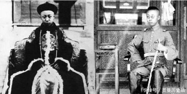 清朝末代皇帝溥仪。光绪皇帝后继任为宣统皇帝,武昌起义后退位,清朝灭亡。1917年7月1日张勋复辟,再度登基,在位仅十二天。1931年"九一八事变"后,日本侵略者扶持前清皇帝爱新觉罗·溥仪在中国东北建立的傀儡政权,初期称号为"执政",年号"大同",后称皇帝,年号"康德"。