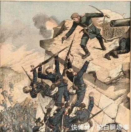 图:日俄战争中俄军正在攻打日军驻守的旅顺要塞,值得一提的是在战争交火地是在中国东北,清朝宣布中立。