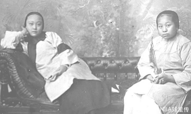 图为晚清时期两位年轻女子在照相馆合影,老照片中的女子穿着素雅,相貌亦是十分的美丽圆润。