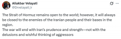 伊朗最高领袖顾问:霍尔木兹海峡对伊朗人民的敌人将永远关闭