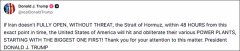 特朗普限伊朗48小时内开放霍尔木兹海峡,否则摧毁发电厂