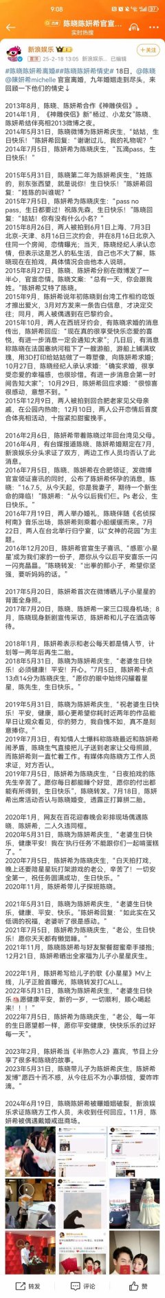 陈晓 陈妍希 离婚 2025/02/19
