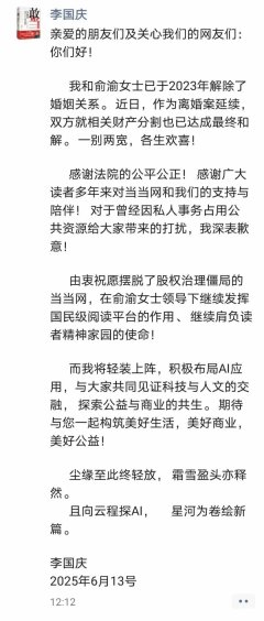 李国庆 当当网 离婚 2025/06/13