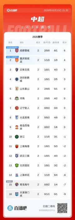 积分榜 开赛 负分 2026/03/16