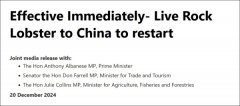澳大利亚 龙虾 中国 2024/12/27