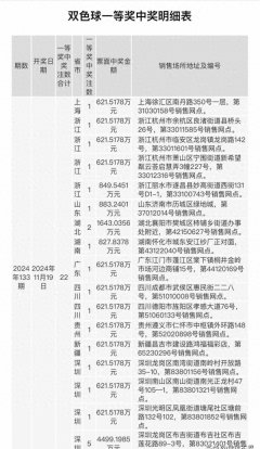 双色球 彩票 三等奖 2024/11/22