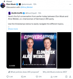 德国 马斯克 魏德尔 2025/01/13