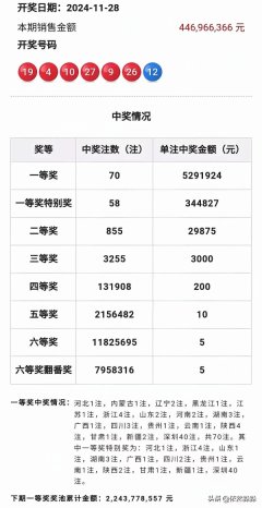 遗漏 号码 奖金 2024/12/04