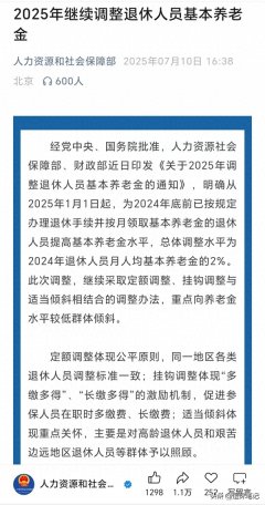 养老金 调整 中低收入 2025/07/16